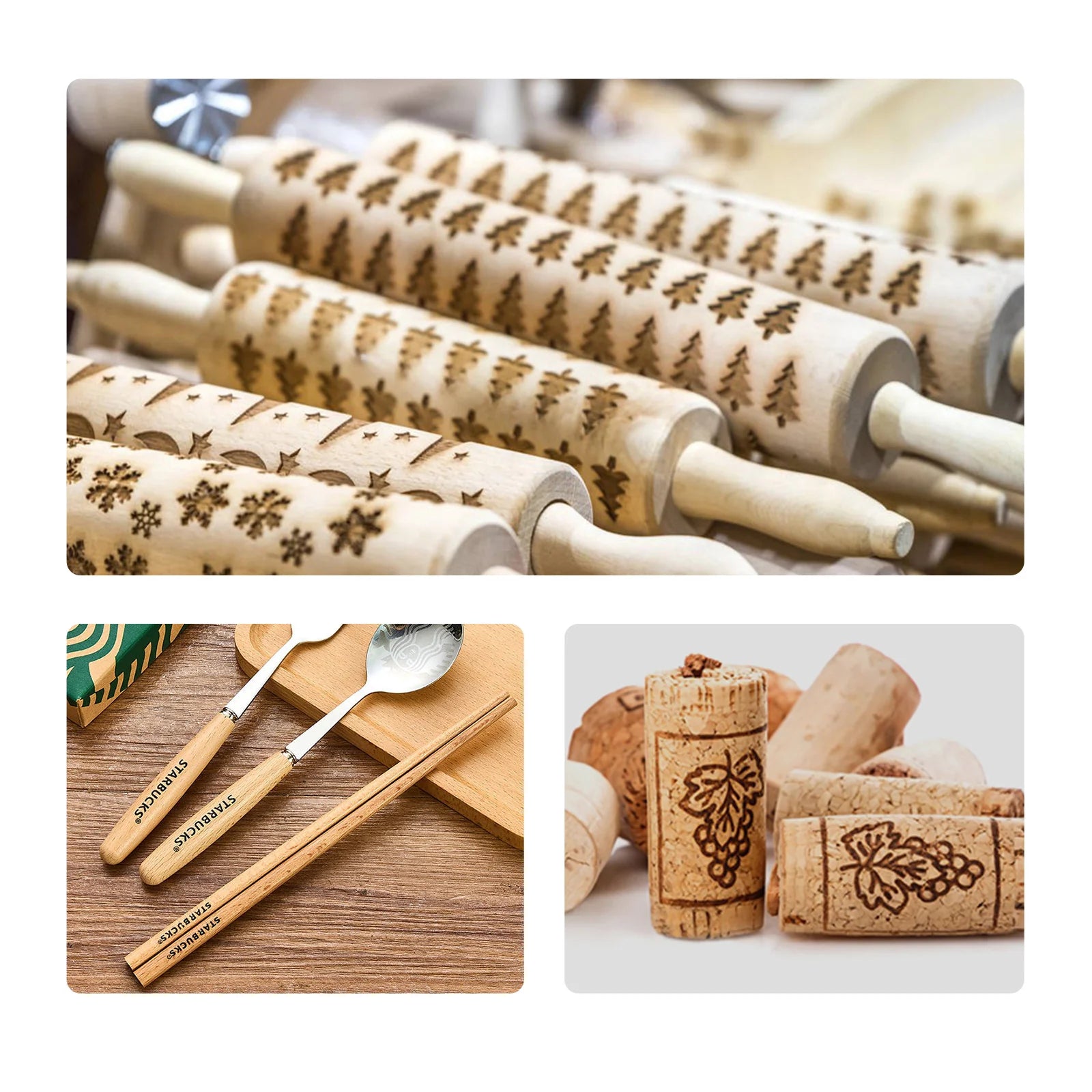 Rotary Axis Technology (r4): Equipped with an r4 rotary axis, the engraver enables 90 rotating engraving.This allows it to be used with a roller (as shown) to engrave curved objects, such as columns, bottles, and cylindrical items.The 90 rotation also serves to unlock more space, letting you handle larger or taller workpieces by angling the machine.
