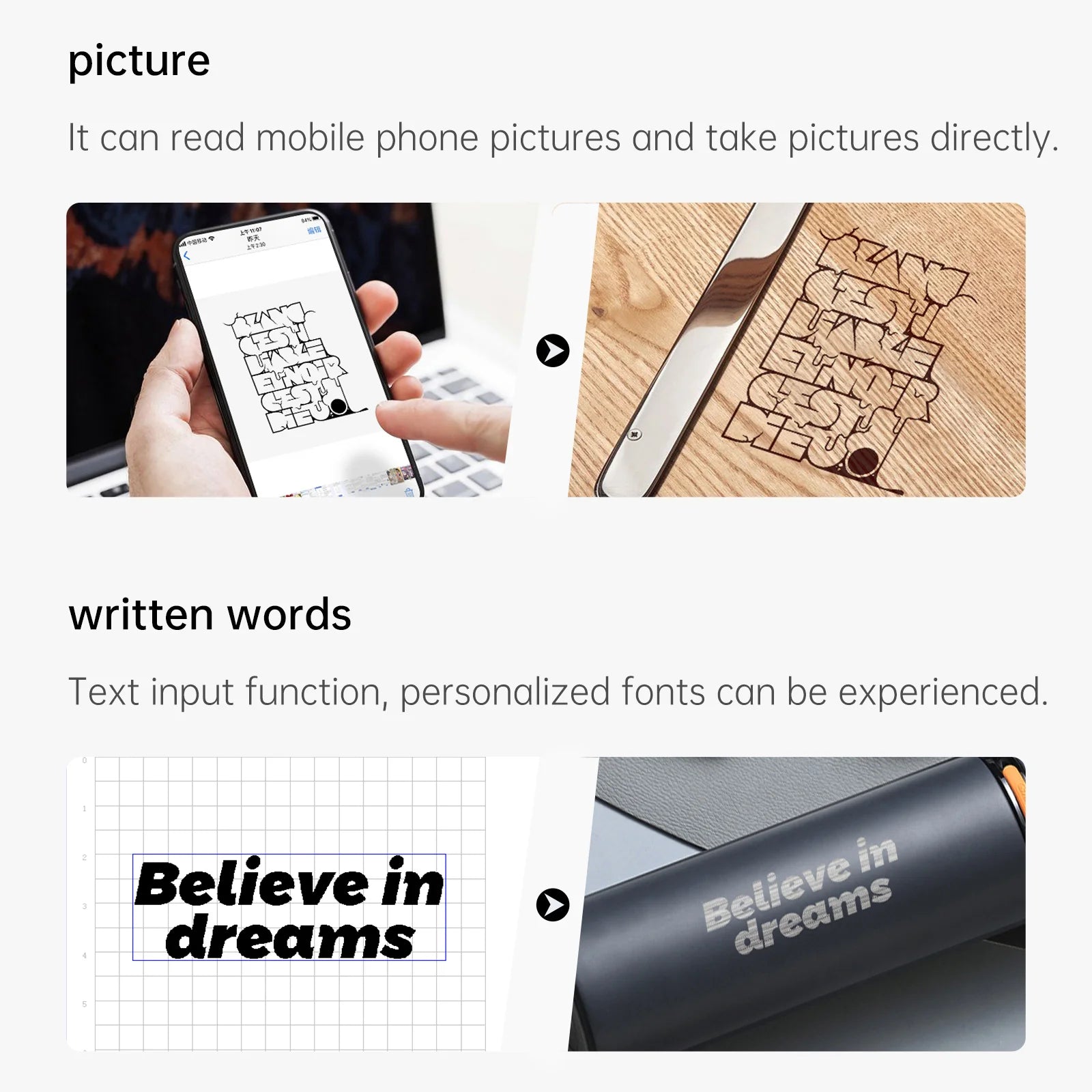 Preferred Engraving Machine: The machine delivers {2K} high-precision details, making it easy to create vibrant and intricate designs on a wide range of materials, including paper, wood, plastic, leather, and painted metal (perfect for custom keychains, bottle openers, and leather goods).